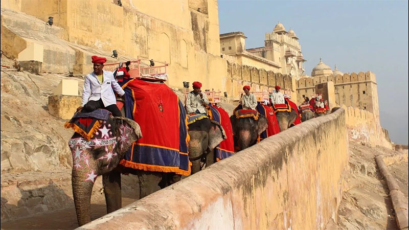 А на таких раскрашенных слониках нас повезут в Амбер Форт. А какие в нем игрушки! Например, в Музее оружия мы увидим копье. А к этому копью снизу приделан пистолетик. Воткнет дружелюбный индийский парень в оппонента такое копье, а потом для надежности в ту же точку из пистолетика и пальнет. Это, чтоб наверняка. Гуманисты, однако! Ужасно интересно.